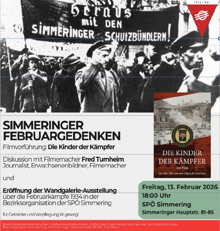 Ebenso wird in der SPÖ Simmering erstmalig eine Wandgalerie-Ausstellung mit Plakaten über die Februarkämpfe 1934 in der Bezirksorganisation eröffnet.